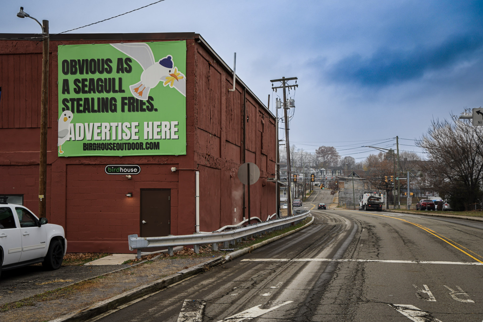 The east-facing billboard is prominently positioned to target traffic moving along Butler Street, as well as foot and vehicle traffic exiting nearby side streets and local businesses. This angle engages residents, small business patrons, and delivery vehicles accessing the area.
